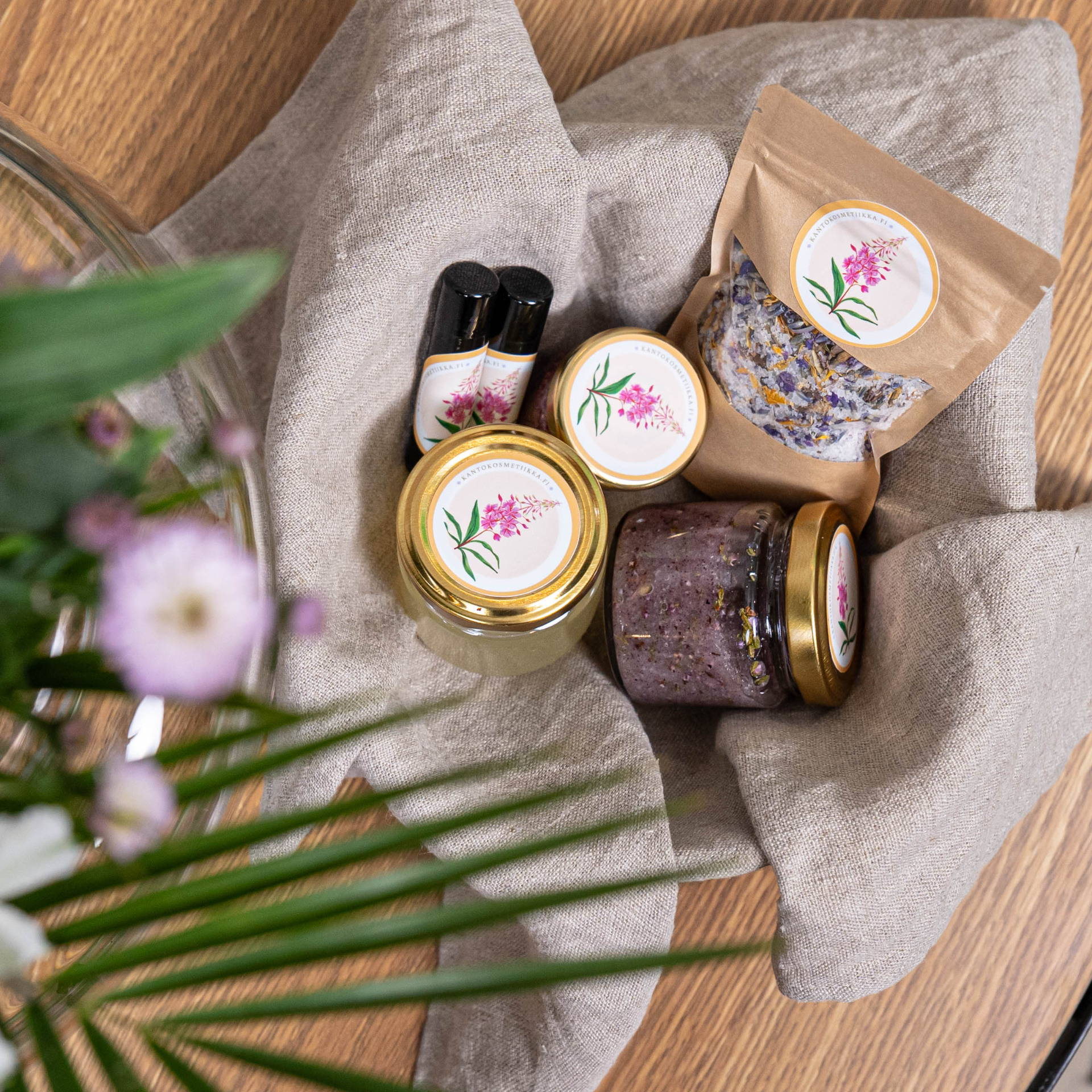INGREDIENTS: Sodium chloride (hieno merisuola), Magnesium sulfate (epsom-suola), Epilobium angustifolium (maitohorsman kukka), Calluna vulgaris (kanervan kukka), Calendula officinalis (kehäkukka), Trifolium pratense (puna-apilan kukka)